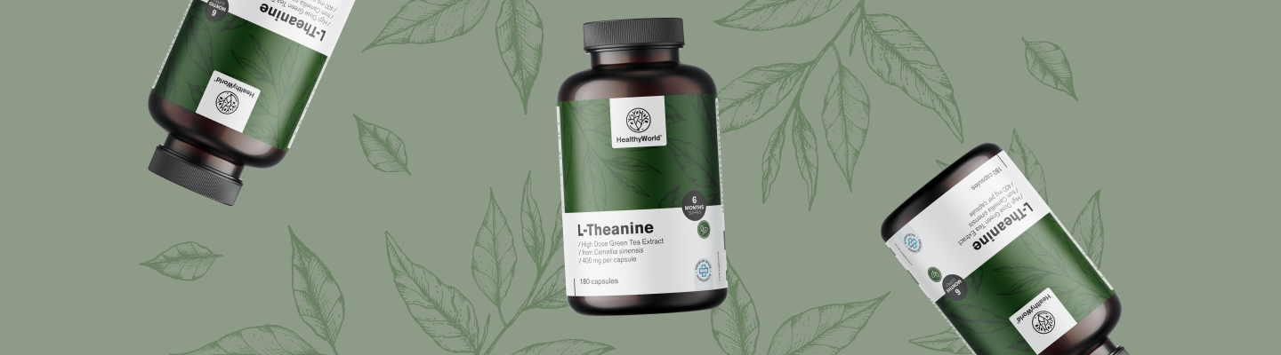 Получено от зелен чай, който е най-добрият източник на тази заменима аминокиселина.
