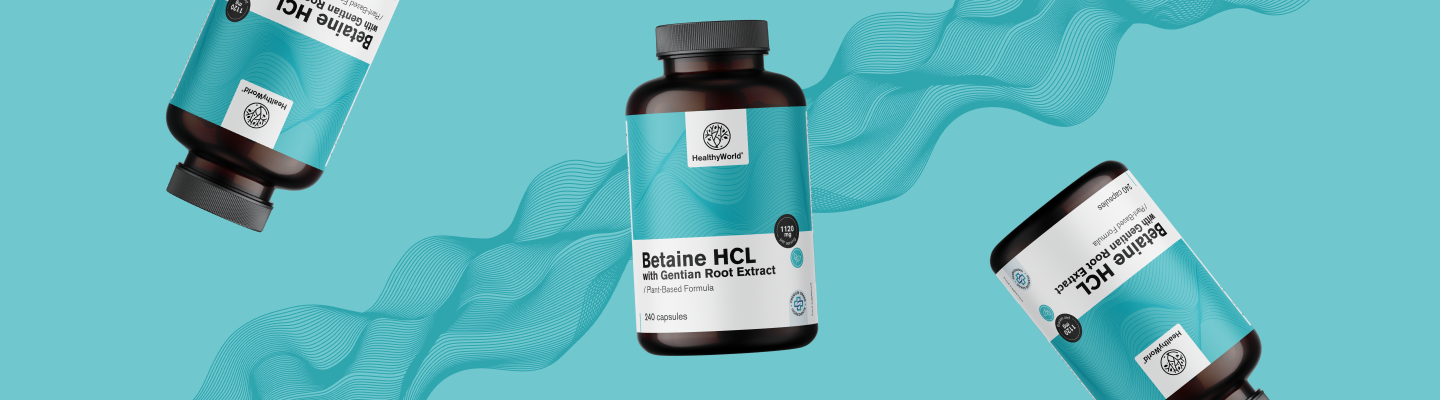Бетаин HCL, или бетаин хидрохлорид, е естествено съединение, което може да действа като допълнителен източник на хлороводородна киселина в тялото ни, което влияе на киселинността в стомаха. По-високата киселинност в стомаха е важна за: