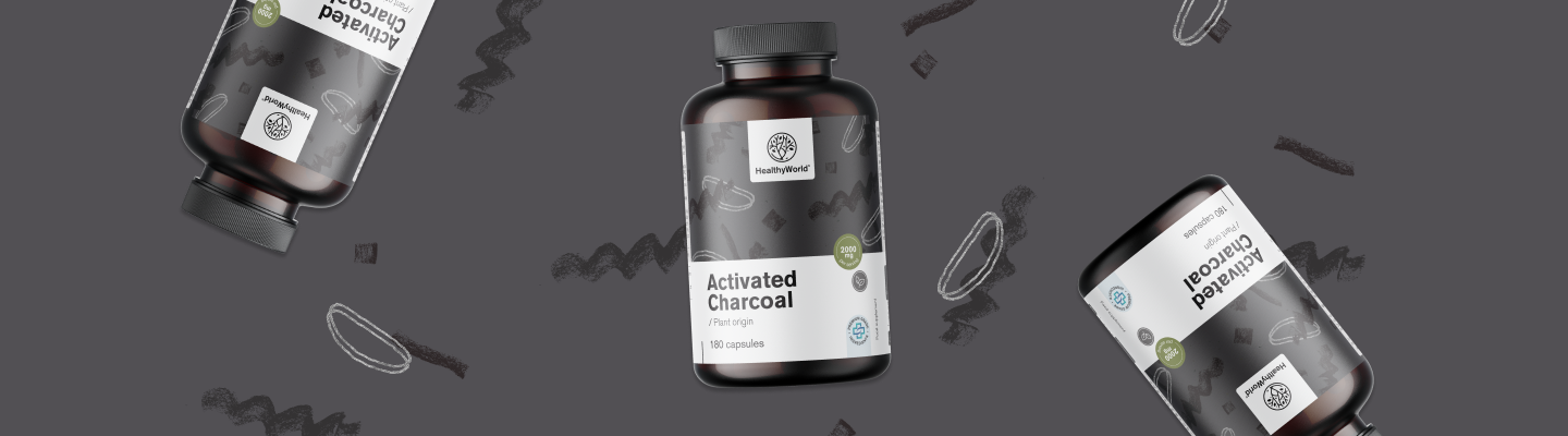 Активен въглен от растителен източник за подпомагане на храносмилането.