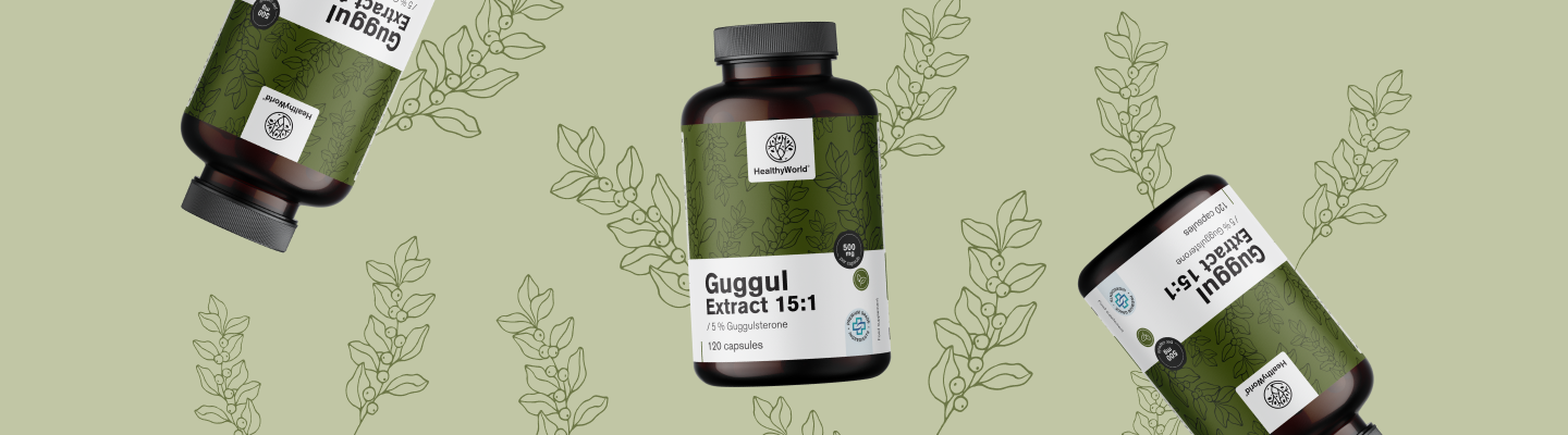 Guggul (Commiphora mukul) с високото си съдържание на гугулстерони има много полезни свойства за човешкия организъм, признати от Аюрведа още преди хиляди години: